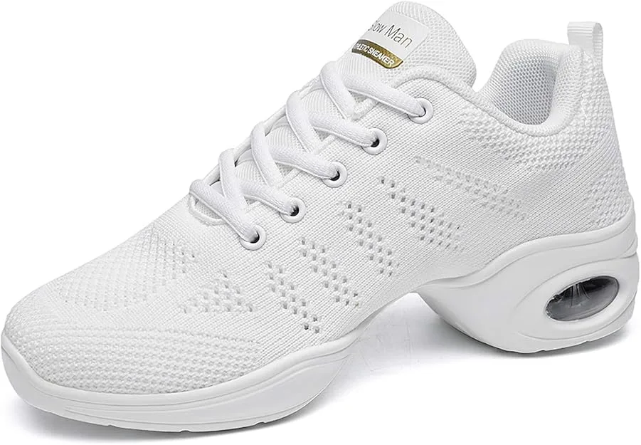 Women's Jazz Shoes Lace-up Sneakers - Breathable Air Cushion Lady Split Sole Athletic Walking Dance Shoes Platform